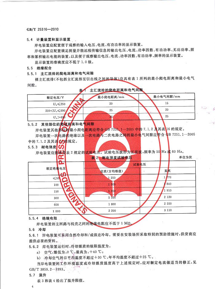 創(chuàng)統(tǒng)負責起草制訂GB/T25316《靜止式岸電裝置》